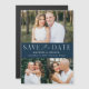Annoncez votre date de mariage avec cette photo moderne et élégante enregistrez l'aimant de date. Le design comporte trois de vos photos fiançailles préférées avec "Save the Date" affiché en serif blanc et polices de script contre un arrière - plan de marine. Personnalisez le minimaliste enregistrez l'aimant de date en ajoutant vos noms, date et emplacement mariage. Le simple enregistrer la date de l'aimant photo est parfait pour n'importe quel thème mariage.