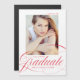 Élégant aimant de graduation avec la photo senior du diplômé et une police de calligraphie moderne rouge. Personnalisez l'aimant du faire-part de diplôme en ajoutant le nom du diplômé, le nom de l'école et l'année de fin d'études.