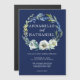 Invitation Magnétique Elégante Marine Blue Floral Wreath Mariage d'hiver