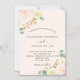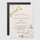 Un fond doré léger et aéré. Décoré de fleurs aquarellées, fleurs roses roses, orchidées blanches et gerbera jaune, verdure d'eucalyptus et brindilles dorées fausses. Personnalisez et ajoutez vos noms et détails de mariage. Lettres de couleur noire.
