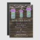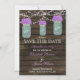 Invitation Magnétique Fleurs violettes Mason Jars Grange Mariage en bois