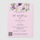 Un arrière - plan rose. Décoré de fleurs pourpres aquarelles et de verdure. Personnalisez et ajoutez vos noms et les détails de votre fête. Ajoutez l'URL de votre site Web mariage au code QR pour plus d'informations.