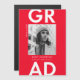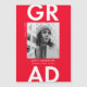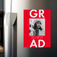 Annoncez votre graduation en style avec nos cartes magnétiques faire-part de graduation photo! Les cartes magnétiques à la mode de graduation affichent la photo de votre diplômé avec "Grad" en caractères blancs gras contre un arrière - plan rouge. Personnalisez l'avant de l'aimant rouge de graduation en ajoutant le nom du diplômé, le nom de l'école et l'année de graduation.