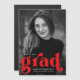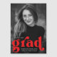 Magnets de fin d'études élégants avec la photo verticale du diplômé avec "grad" en caractères rouges gras. Personnalisez l'aimant du faire-part de diplôme en ajoutant le nom du diplômé, l'année de diplôme et l'école.