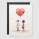 Illustration minimaliste et réconfortante d'un couple tenant la main, relié par un ballon rouge en forme de coeur qui flotte au-dessus d'eux. Le design simple, la texture aquarelle et les éclaboussures douces de couleur sur un arrière - plan blanc donnent une impression douce et rêveuse à l'oeuvre, symbolisant l'amour et la convivialité d'une manière pure et innocente.