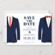 Faites savoir à tous que vous avez tous les deux fixé une date pour votre mariage avec cette carte moderne, à l'exception de la carte de dattes comportant deux costumes de marine. Personnalisez-vous en ajoutant vos noms, votre date et votre emplacement mariage.