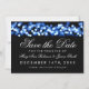 Design élégant de mariage "Save The Date" avec Blue Hollywood Glam Lights, ainsi que des noms personnalisés et le texte de la date. Impressionnez votre famille et vos amis avec ce design élégant et moderne. Entièrement personnalisable ! Facile à utiliser et facile à personnaliser
