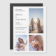 Un collage de photo moderne magnétique enregistrer la date avec une mise en page simple et minimaliste avec trois photos et les détails de votre mariage en noir gauche aligné texte sur un arrière - plan blanc. Ces élégantes dattes sont un ajout élégant à un mariage tendance.