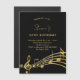 Une carte magnétique d'invitation à la fête d'anniversaire moderne et branchée de 50e anniversaire pour hommes et femmes. Un arrière - plan noir classique et des notes de musique, des lettres dorées. Personnalisez et ajoutez les informations de votre parti.