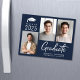 Carte magnétique bleu foncé de graduation moderne avec 3 photos et "Graduate" dans un audacieux script blanc contemporain. Ajoutez le nom du diplômé, l'année de classe et le lycée ou l'université en simple typographie blanche.
