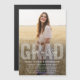 Share the joy of a high school or college graduation with custom photo magnetic announcements. The picture and wording on this template are simple to personalize, and the colors are easy to change with the Zazzle design tool. Include any details of your choice, such as party invitation info, special honors, degree title, favorite inspirational quote, graduate's contact info, or plans for the future. The magnetic backing makes them easy for family and friends to display. The elegant minimalist black and white design features modern bold white typography overlay, trendy script calligraphy and and one photo of your choice, such as a senior picture or image from the commencement ceremony. This chic graduation card is a stylish way to announce a special day celebration. Congratulations to the graduate!