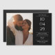 Une carte magnétique moderne minimaliste et moderne avec vos détails de date, photo et mariage spéciaux, mise en place dans la typographie classique et chic sur un arrière - plan noir. Conçu par Thisisnotme©