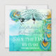 Cartes de Mariage à Sauvegarder sous les Étoiles avec Typographie Aquarelle Bohème Plume de Paon Turquoise Bleu Vert et Cuivre