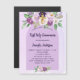 Arrière - plan violet, lavande aquarellé. Décoré de fleurs violettes et violettes aquarelles et d'une croix dorée. Personnalisez et ajoutez votre nom et vos coordonnées de réception.