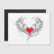 Coeur rouge peint de façon artistique avec ailes d'ange gris, décoré de contour lisse noir.