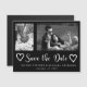 Le script de brosse moderne noir et blanc fantaisie enregistrer la date mariage avec 2 photos collage - un vertical / portrait orienté et l'autre horizontal / paysage et deux coeurs de doddle. +++++++++++++++++++++ Personnalisez-le avec vos photos, noms et date mariage !
