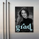 Des aimants de annonce de remise des diplômes élégants présentant la photo verticale du diplômé avec "diplômé" en lettres bleues ciel grasses. Personnalisez l'aimant d'annonce de photo de remise des diplômes en ajoutant le nom du diplômé, l'année de remise des diplômes et l'école.