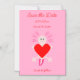 Ce magnétique génial sauvegarder la date faire-part de mariage présente une image art numérique d'un axolotl mignon, une salamandre mexicaine, tenant un coeur rouge. L'Axolotl est rose pâle avec d'énormes yeux noirs et un grand sourire rose. Il a des branchies de plumes rose vif sur le côté de sa tête et un plume rose vif sur sa queue. Il y a du texte personnalisé pour que vous puissiez inclure tous les détails.