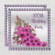 De belles invitations personnalisées pour un 100ème anniversaire pour femmes et filles. Le devant de ce modèle présente un magnifique bouquet de fleurs violettes / lilas rose et blanches, imprimé sur un joli fond dégradé argenté avec un cadre bokeh violet et une bordure de cadre en diamants avec strass et pierres précieuses. Le verso présente le même design de fond avec suffisamment d'espace pour vos coordonnées. Tout le texte est entièrement personnalisable pour répondre à vos besoins. Si vous souhaitez une assistance pour personnaliser votre produit, veuillez me contacter via ma boutique, je serai ravi de vous aider.