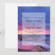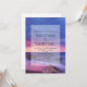 Une invitation de mariage avec une belle photographie présentant des couleurs saisissantes de pourpre, de bleu et de rose au coucher du soleil.