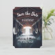 Magnifiques faire-part de save the date uniques avec un pont couvert de Nouvelle-Angleterre. Parfait pour une grange rustique, une ferme ou un mariage en plein air. Comprend une face entièrement personnalisable et un charmant fond noir à pois blancs.