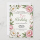 Célébrez un événement remarquable avec cette élégante invitation pour un 75e anniversaire, qui présente un gracieux motif floral inspiré d'un jardin anglais classique. Les pivoines roses tendres et les magnolias blancs crémeux encadrent la mise en page avec un feuillage vert luxuriant, créant un look sophistiqué et intemporel parfait pour honorer une femme spéciale qui fête ses soixante-quinze ans.