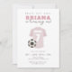 Célébrez la journée spéciale de votre enfant avec cette invitation d'anniversaire au maillot de football rose, parfaite pour une fête d'anniversaire sur le thème du football féminin pour un 7ème anniversaire. Ce design sportif présente un thème de maillot de football amusant qui est idéal pour les jeunes fans de football.