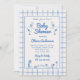 Si vous cherchez une invitation de baby shower bébé bleu unique et facile personnalisable, élégant et unique, ceci est parfait pour vous. Comme vous le voyez, il comporte un script rétro manuscrit de baby shower en bleu. Et l'oie dessinée à la main portant un ruban. Et cadre de bordure bleu et main bleue dessinée en vichy arrière - plan. Tout bleu et arrière - plan crème. Très facile à customiser et à utiliser. Alors attrapez-le et mâchez vos invitations très engagés.