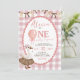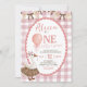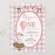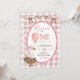 Poignée rose Quirky Tirée Une Oie Silly Anniversaire, Coquette Brown Bow Anniversaire Invitation, Péditable Preppy Pink Balloon Premier Anniversaire