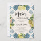 Teintes de citron et indices de fête : un conte d'amour écrit dans un stand de citronnade ou de citronniers arborant un décor de tuiles bleues italiennes. Cette invitation avec le thème "Elle a trouvé son principal pressoir" capture l'essence de ce récit sucré, vous invitant à célébrer la découverte de l'amour de la mariée et un thème lumineux et ensoleillé de la douche nuptiale. Découvrez une douche nuptiale à thème agrumes qui rayonne de chaleur et de zeste. Une aquarelle moderne et tendance, illustrée de branches de citrons et de citrons, avec quelques roses roux saupoudrés, disposés dans un cadre en diamant, offre le décor de ce brunch élégant et chic sur le thème des agrumes, qui comprend également une aquarelle peinture italienne carrelage. La calligraphie moderne complète ce design unique qui est parfait pour une douche nuptiale de printemps ou d'été, pour une fête de jardin, une fête festive à l'intérieur ou une fête de maison sobre.