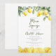 Cette invitation de fête de mariage moderne à l'aquarelle citron peut être personnalisée avec vos informations dans une typographie élégante. Conçue par Thisisnotme©