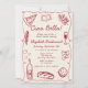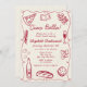 De style rétro, le design de cette fête, d'un style fantaisiste et fantaisiste, présente une charmante couleur rouge vif, un cadre ondulé ludique et des illustrations de la cuisine italienne. Associé à d'élégantes polices de caractères à la main, ce design est parfait pour ajouter une touche de vintage allure à votre événement. Idéal pour les douches en couple ou les douches nuptiales, surtout celles à thème pizza ou pâtes.