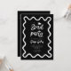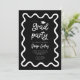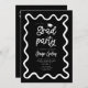 Carte d'invitation à la fête de remise des diplômes amusante avec cadre serré et ondulé dessiné à la main. Arrière - plan noir.