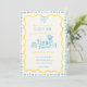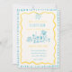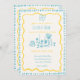 Ce faire-part de mariage à la mode dessiné à la main est orné d'un arc à griffes et d'éléments de table. Le design fantaisiste et décalé comprend des caractères manuscrits et des doodles de célébration. Couleurs bleu et jaune vif pour mariage classique mais moderne stationnaire.