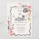 Ce faire-part de mariage à la mode dessiné à la main est orné d'une bordure florale ondulée griffée et d'éléments de table. Le design fantaisiste et original comprend une police manuscrite et une boule de disco rétro. Style griffé noir et blanc pour mariage classique mais moderne stationnaire.