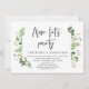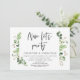 Moderne écriture noire, thème de verdure de jardin d'été feuillu, carte d'invitation de mariage en fuite (maintenant, faisons la fête). Elle est parfaite pour votre réception de mariage en fuite / fête de célébration de mariage après. Ajoutez vos détails dans une police / lettrage noir assorti.
