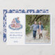 Cette Carte de Noël a un design primitif du grand-millénaire avec une maison en pain d'épice rose et bleu marine. Le bas a un texte bleu qui dit "Joyeux Noël". Vous pouvez personnaliser avec un nom et une année. Le dos a un motif de damas bleu foncé coordonné.