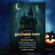 Préparez la scène pour une soirée effroyablement amusante avec cette invitation hantée de fête d'Halloween maison. Un grand manoir gothique brille sous une lune en croissant tandis que des fantômes sympathiques dérivent dans le ciel nocturne, parfait pour une soirée costumée adulte ou en famille. Personnalisez le nom d'hôte, la date, l'heure, l'adresse et le RSVP. Idéal pour les thèmes hantés des manoirs, les anniversaires d'octobre, les bashes de quartier, ou votre bash annuel d'Halloween.