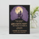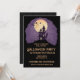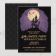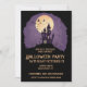 Une invitation gothique d'Halloween avec la silhouette d'une maison hantée sur une pleine lune lumineuse avec des chauves-souris et des arbres sinistres. Conçu dans des tons sombres de pourpre et de noir, cette œuvre dramatique donne le ton parfait pour les fêtes d'Halloween. Personnalisez avec les détails de votre événement pour créer une invitation mémorable.