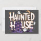 Ce design festif et ludique capture l'esprit d'Halloween avec une typographie saisissante et une illustration d'une maison hantée classique, accompagnée de fantômes souriants et de chauves-souris volant dans une nuit sombre. Parfait pour des décorations d'Halloween familiales, des invitations à des fêtes ou des événements thématiques, ce visuel mélange habilement la peur et l'amusement. Les couleurs sombres et les éléments fantomatiques créent une atmosphère à la fois mystérieuse et joyeuse, idéale pour les petits et les grands amateurs de frissons.
