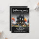 Bienvenue à votre soirée costumée Halloween avec cette invitation éffrayante et simple, avec une police arrière - plan sombre, moody et blanche et orange. Le design garde un look audacieux et classique avec un mélange de typographie de script et de polices serif fortes. Une maison hantée noire se trouve au centre, agrémentée de paps d'orange de citrouille, de jack-o-lanternes et d'arbres déplaisants. De mignons fantômes et chauves-souris apportent une touche ludique, tandis que les polices d'inspiration grunge lui donnent une ambiance gothique vintage. L'arrière de l'invitation correspond à l'avant avec le même arrière - plan en détresse sombre pour une sensation éffrayante complète. Bien qu’il soit actuellement mis en place pour une fête pour adultes, vous pouvez facilement le mettre à jour pour travailler pour une fête d’Halloween pour enfants aussi! Disponible sous forme d'invitation imprimée ou d'invitation numérique téléchargeable que vous pouvez envoyer par e-mail ou imprimer localement.