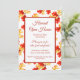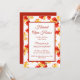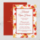 Invitation élégante pour une maison ouverte de récolte, avec des accents automnaux rouges et dorés. Avec un lettrage rouge et or, vous pouvez personnaliser avec vos propres informations. Il y a un exemple de menu au dos afin que vous puissiez informer vos invités du menu que vous servez.