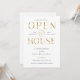 Créez des invitations élégantes pour votre événement professionnel pour une pendaison de crémaillère ou une soirée d'ouverture de votre entreprise avec cette invitation de maison ouverte à effet doré. Cette invitation élégante blanche et or pour événement de maison ouverte présente une mise en page tendance avec des polices sophistiquées, un espace pour votre logo et les détails de l'événement, parfait pour inviter vos invités à votre pendaison de crémaillère.