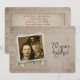 Invitation à une maison ouverte pour le 70e anniversaire de mariage avec cadre photo personnalisé vintage et bouquet de marguerites et perles.