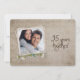 Invitation à une maison ouverte pour les 35 ans de mariage avec un cadre photo personnalisé vintage et un bouquet de marguerites et des perles.