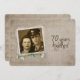 Invitation à une maison ouverte pour les 70 ans de mariage avec un cadre photo personnalisé de style ancien et un bouquet de marguerites et perles.