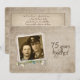 Invitation à une maison ouverte pour les 75 ans de mariage avec un cadre photo personnalisé à l'ancienne et un bouquet de marguerites et de perles.