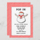 Cartes d'invitation créatives pour une maison ouverte pendant les fêtes avec un bonhomme de neige drôle qui enfile du pop-corn et des canneberges, pour des amis, voisins et famille.