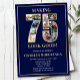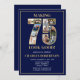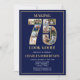 75th Birthday Photo Collage "Making 75 Look Good" Party Invitations. Celebrate the man in your life who's turning 75 with these elegant and festive party invitations featuring 11 photos of him with his friends and loved ones. The fonts are clean, modern, trendy, and easy to read in gold and white on a navy blue background.