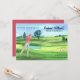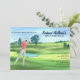 Celebrate the big 5-0 with this fun and stylish golf-themed 50th birthday invitation. The design features a beautiful watercolor illustration of a golf course with a golfer in mid-swing, playfully putting toward the number 50. The humorous quote “Swinging Into My Fifties” appears in an elegant script font, while the party details are presented in a classic serif font for a clean and polished look. Perfect for golf lovers, this invitation blends humor and sophistication to set the tone for a memorable celebration.